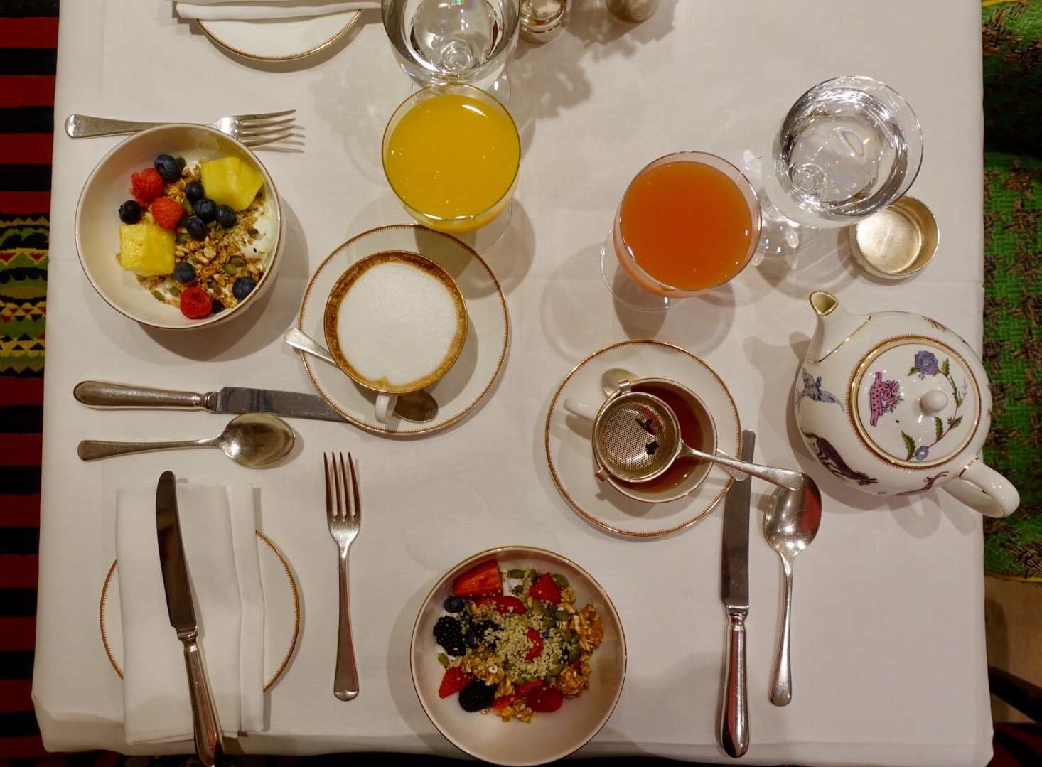 It shows that Kit Kemp – the owner and interior designer of the place – does love breakfast! Everything is served on fine bone china from her Mythical Creatures Wedgwood collection. It is adorned with whimsical characters, hand-painted and gold detailed, nice!