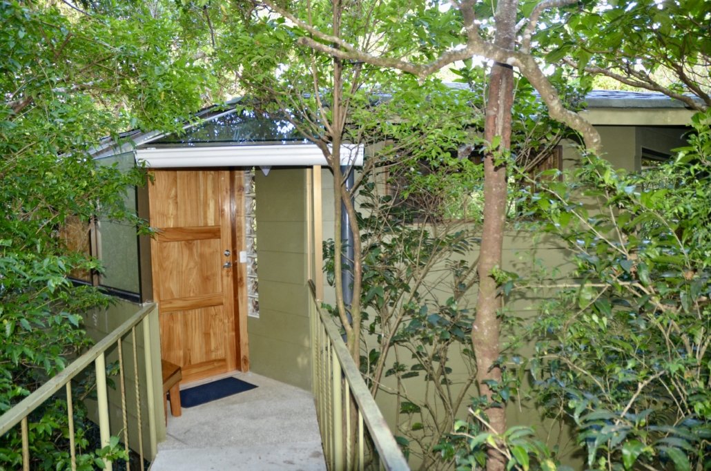 There are well-kept gardens and a trail around the vast property where you are accompanied by the owner’s dogs when making the tour. In the main house there is a guest lounge with large windows where you have sweeping views of the Gulf of Nicoya. There a delicious teatime or better a happy hour takes place, fantastic sangria or other alcoholic and non-alcoholic drinks are offered and delicious savoury and sweet snacks are served, a nice touch. Also the breakfast is served there. Jenn, the host (and owner), gives her best to satisfy their customers’ needs, be it reservations for restaurants and arrangements for tours in the Monteverde area.