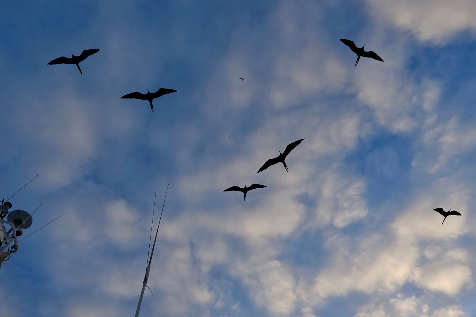 We embarked the Silver Galapagos at San Cristobal and after meeting the expedition team we set sail. Later on, we circumnavigated Kicker Rock, the remains of a lava cone. Frigatebirds accompanied our sail and swallow-tailed gulls could be seen.